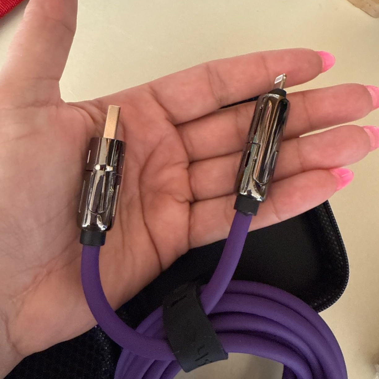 Our 4-in-1 Charging Cable keeps all your devices powered up—fast, clutter-free, and hassle-free. Ditch the drawer full of tangled cords and grab one sleek cable that handles it all—iPhone, Android, tablets, and more. One cable. Total convenience.
